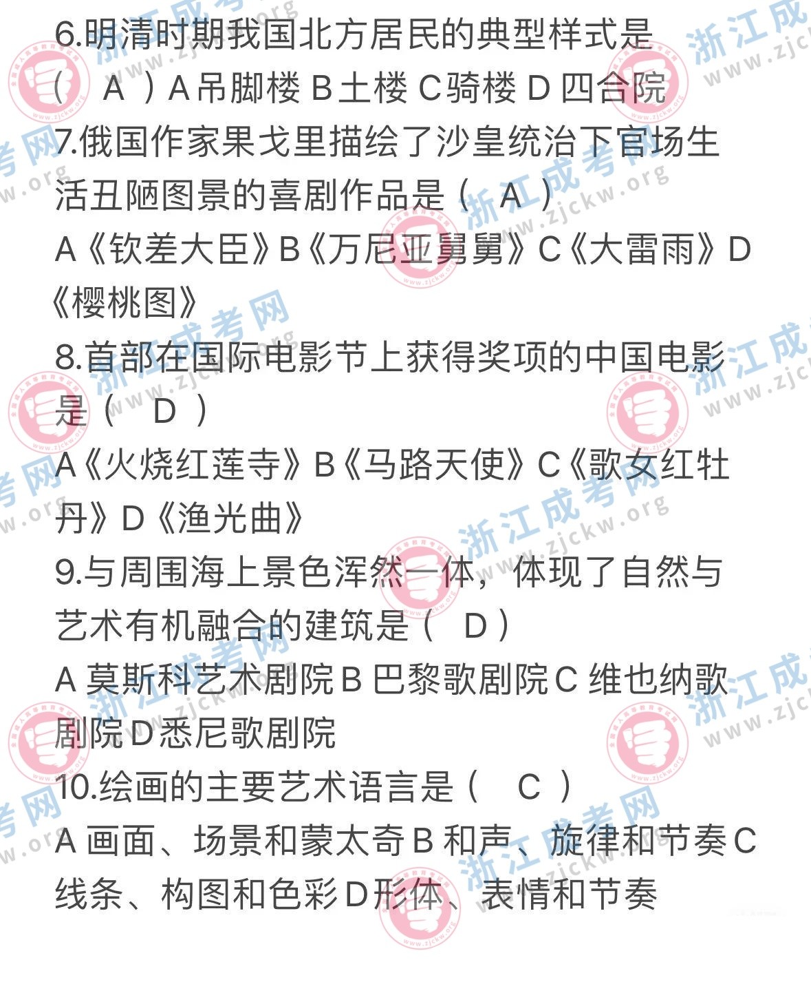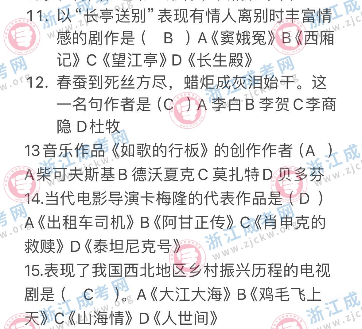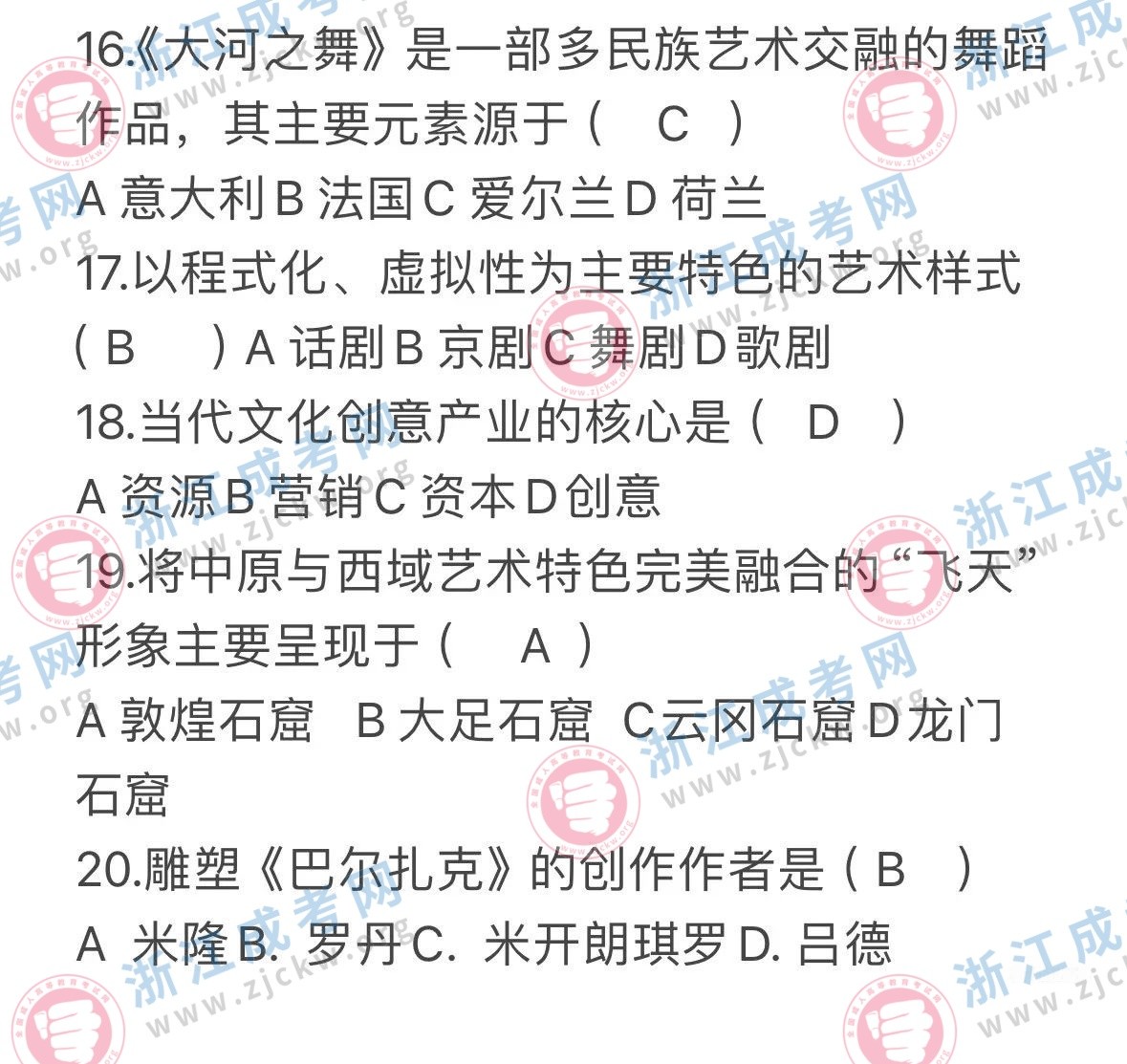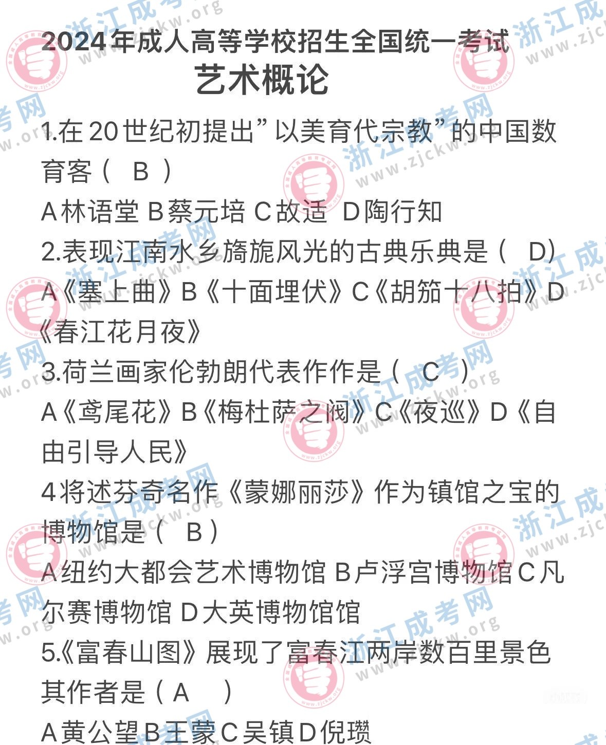 杭州成考網(wǎng)為廣大考生提供2024年成人高考全國(guó)統(tǒng)一考試(專升本生藝術(shù)概論)真題答案